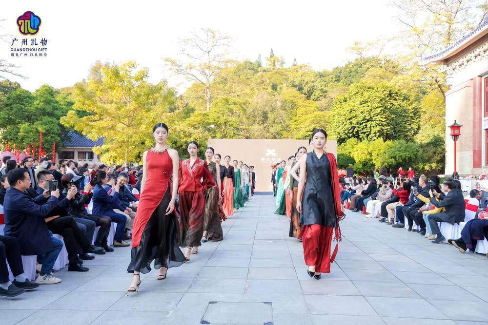 当天,广州香云故里文化发展有限公司还带来了一场惊艳的非遗时尚秀,通过《木棉花开》《推窗见禧》《锦绣年景》三大服装系列展示,融合了木棉花、满洲窗、非遗刺绣等元素,生动演绎“广州礼物”十二个系列之“锦绣风华”。